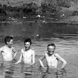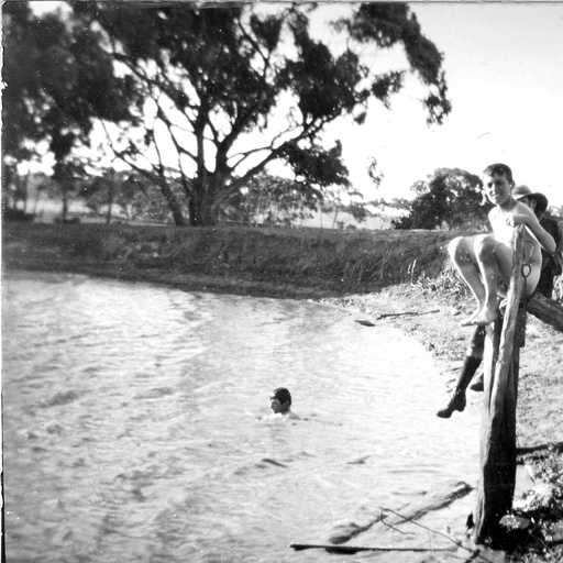 These companion shots were taken in 1933. In both it is quite apparent that the boys are not wearing bathing suits.