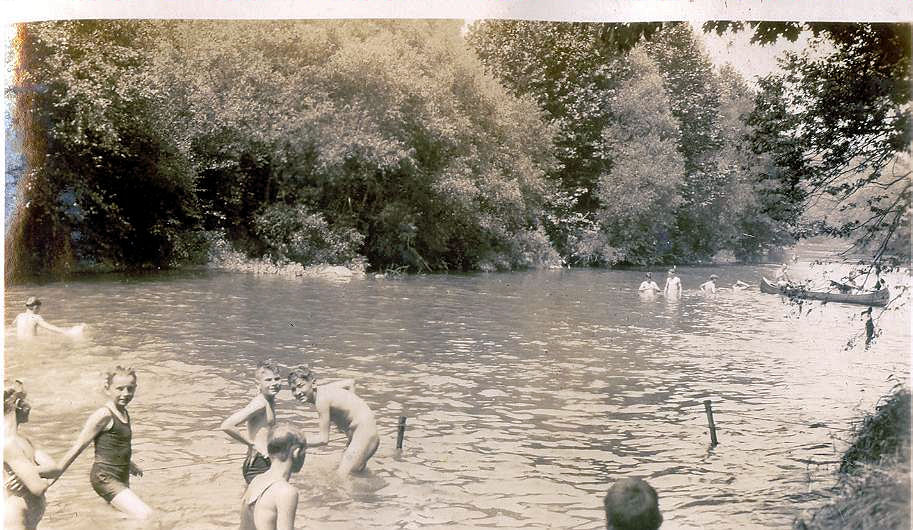 The Octorara Creek meanders through southern Pennsylvania and northern Maryland before emptying into the Susquehanna River which in turn flows into the Chesapeake Bay. Along its Maryland course it describes an arc that resembles a horseshoe. It was natural then that when the Boy Scouts set up a reservation that included the creek, it was dubbed Camp Horseshoe. In the early years of operation (1928-30) the swimming facility was the creek itself. Only after a pool was built in 1930 did they discontinue regular use of the natural waterway for swimming. Here are a few pictures from 1928.