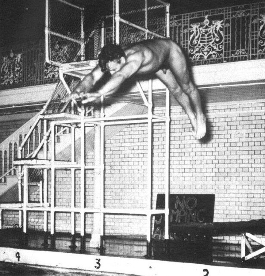 Nothing says “exhibitionist” like springboard and platform diving. And if you do it in the nude in front of a crowd, that has to be the ultimate rush. Anecdotally, I recall a former participant from this era saying exactly that in a blog forum. He always paused to give the fans an eyeful.