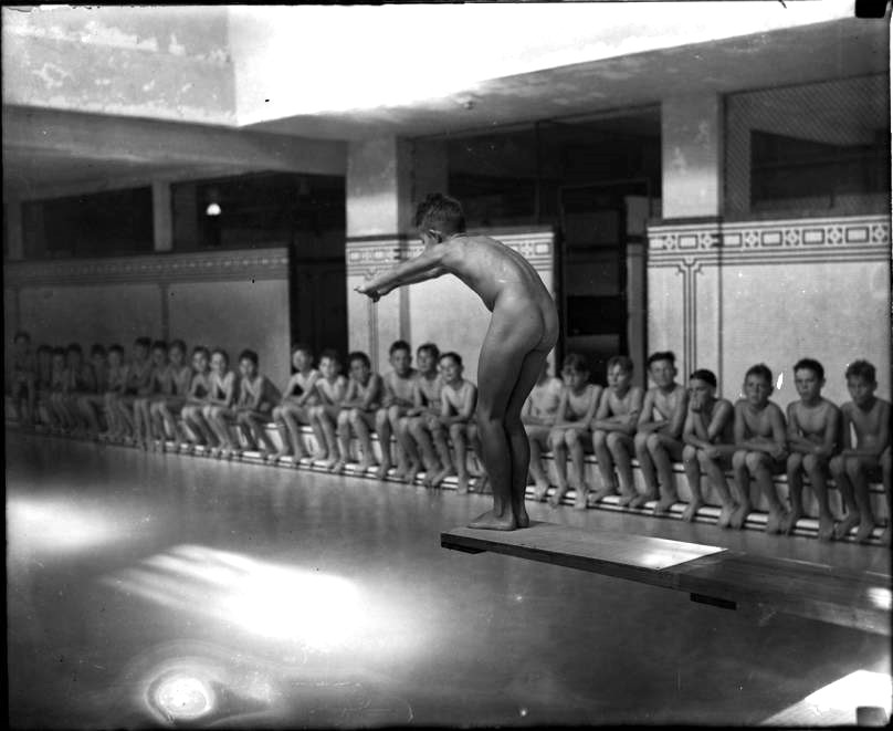 Here are a few very old-looking diving images that seem to take us back to the good old YMCA.