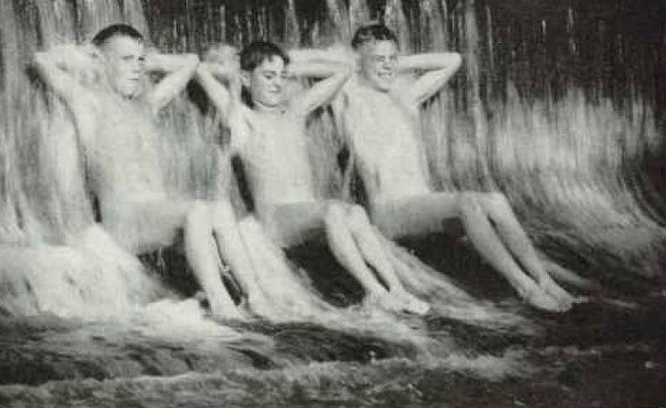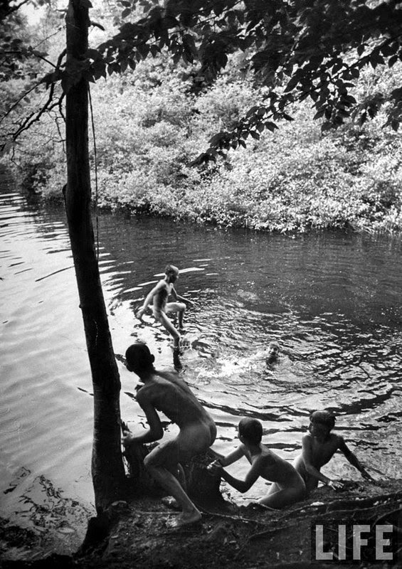 This image has some unusual features. The boys are sitting under overspill of a small dam on Cross Creek in Ohio – not something you see every day. The other noteworthy bit of data is that this photo appeared in the September 1946 edition of National Geographic. Apparently, images of skinny-dipping boys were considered entirely appropriate for this prestigious publication.