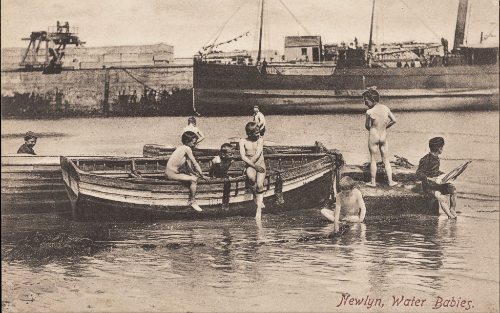These boys are frolicking in a rural settling in western Ireland in 1901. This image is included in the UK section because at that time Ireland was indeed part of the English realm. It took a few decades of political unrest to get that problem sorted out, but nude swimming was never one of the points of contention.