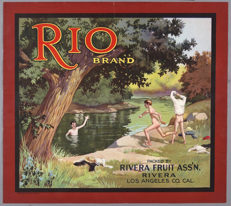 The nostalgic recollections of the “ol’ swimmin’ hole” seeped into the mainstream as a theme of illustrations and advertisements, ostensibly reflecting cultural norms and values. Indeed, the phrase itself became a code for nude male swimming whenever and however it occurred. Based on the evidence on hand, use of this theme may have been at its peak in the period from 1900-1940 (or so) giving us a glimpse into what the society of that era felt was a normal, non-harmful activity.