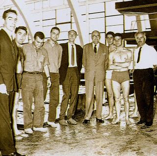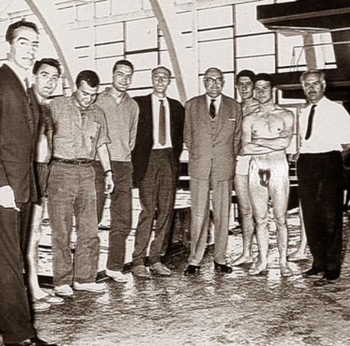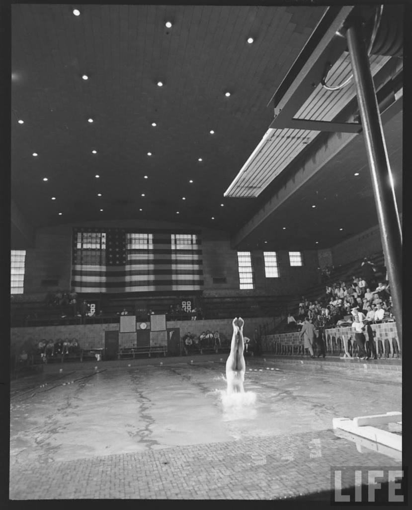 It is March 30, 1953 and the is an AAU-sanctioned intercollegiate swimming tournament being held at Ohio State University’s natatorium. A forger found this LIFE magazine image and “improved” it. That occurred on June 23, 2012, using Photoshop on a Mcintosh.