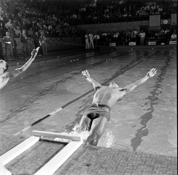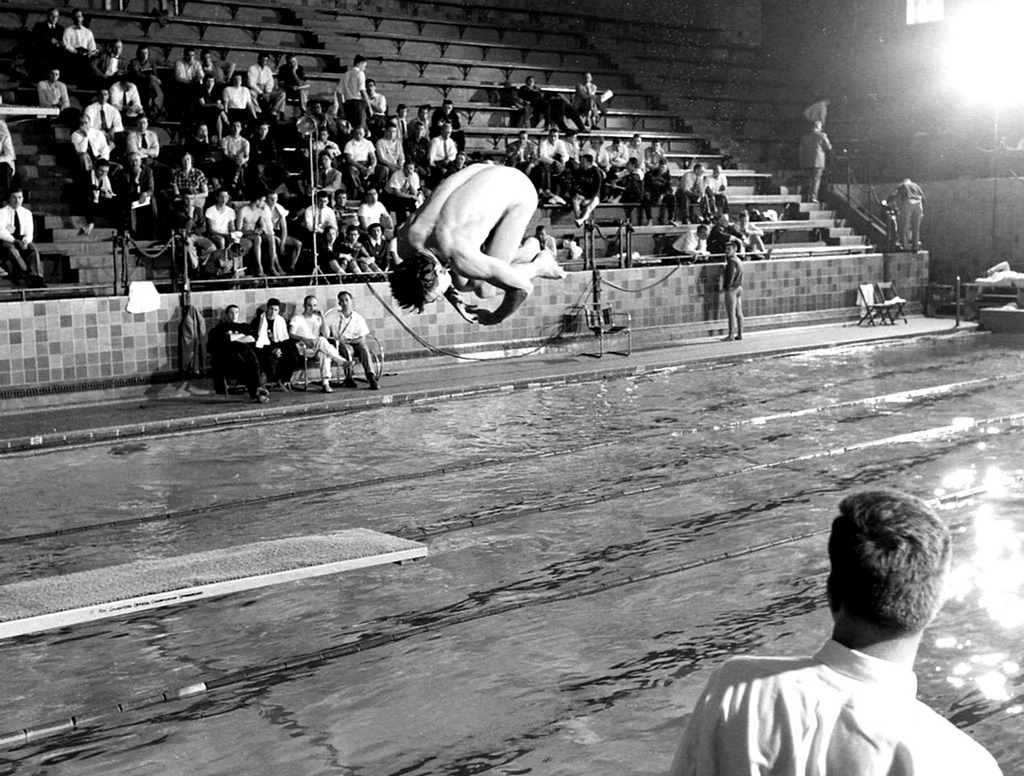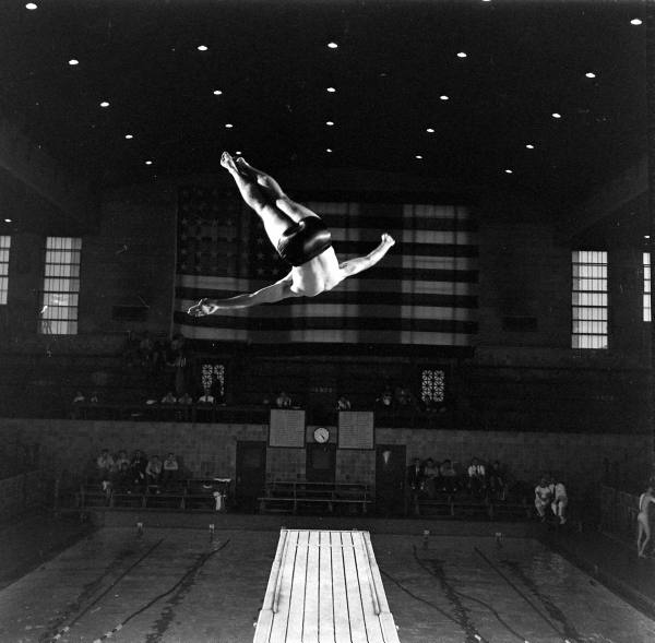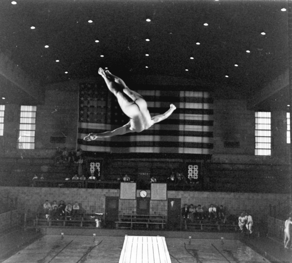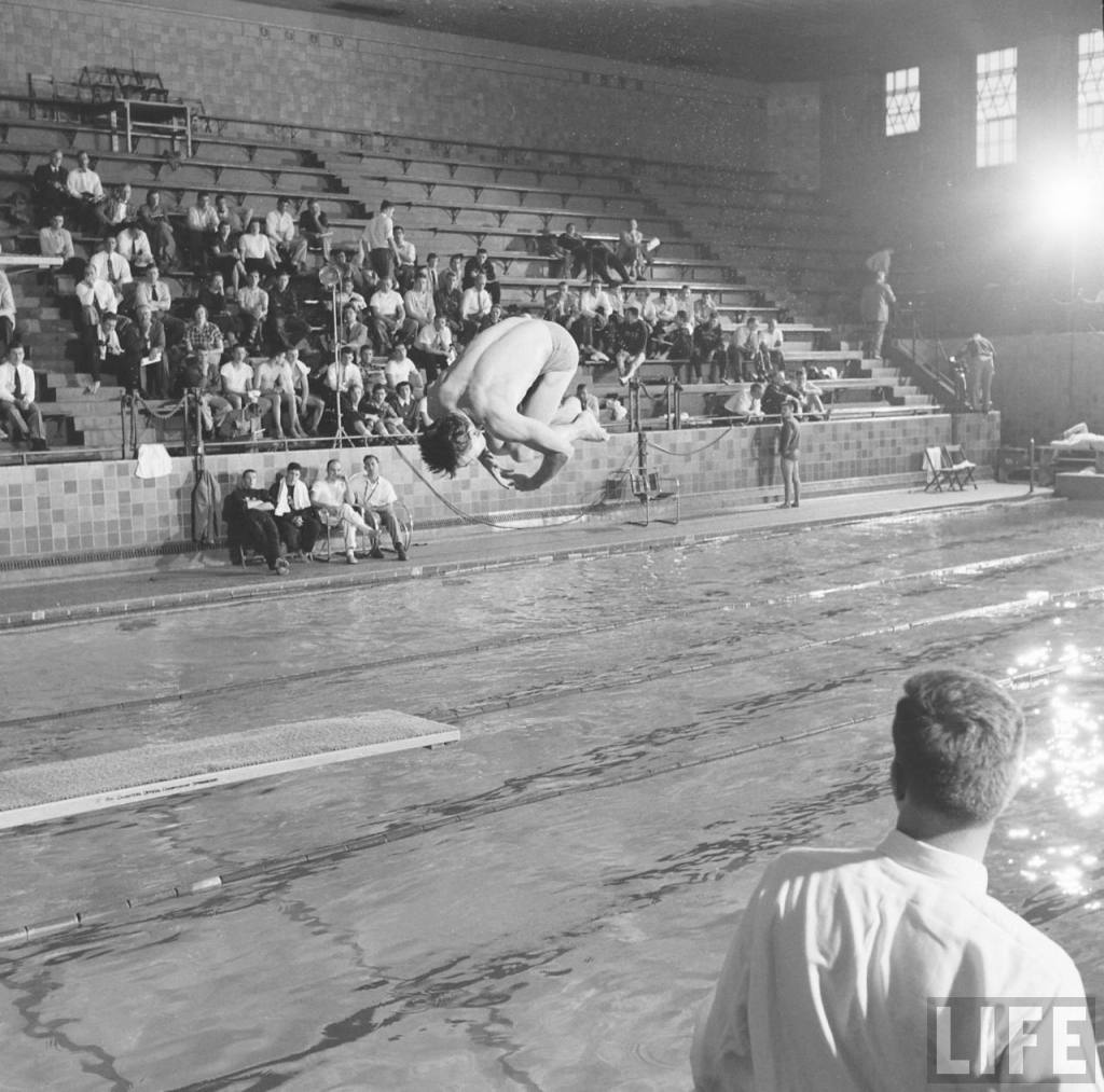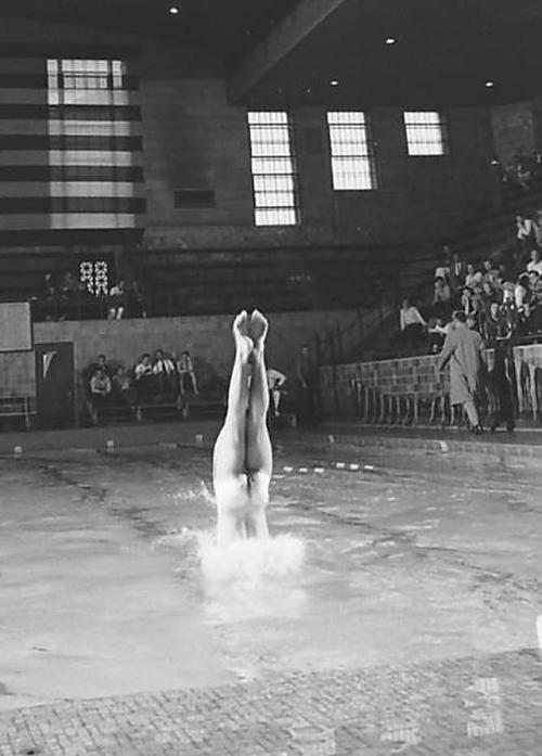 During that same tournament, LIFE photographers captured some arresting images of the diving competition as seen in the next two pairs of altered and unaltered images.