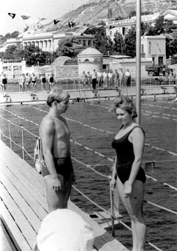 The faked version of this image has been all over the internet. The guy pictured was an international champion underwater swimmer (I wonder how much spectator attention that drew) for the old Soviet Union. He was actually a Ukrainian. He nevertheless got no respect from a forger.
