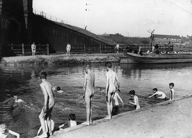 We are on the Regents canal in the UK on August 21, 1911. There is a heat wave in progress and home AC is still several decades in the future. These boys took matters into their own hands – and very effectively.