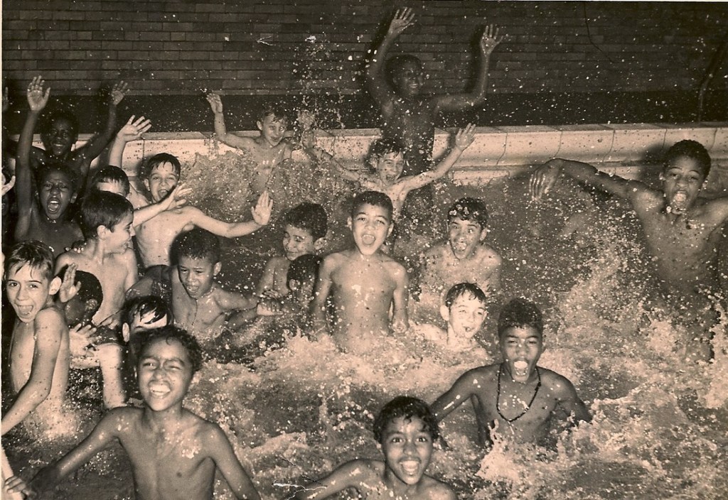 These two are the companion pictures to the last image included in The Good posting. It is from the Fox Point Boys’ Club in Providence Rhode Island. These pictures of a multi-racial group of boys frolicking in the pool are undated. The nude state of the participants is clear, however. Note the lad sitting on the edge in the upper left of image 27.